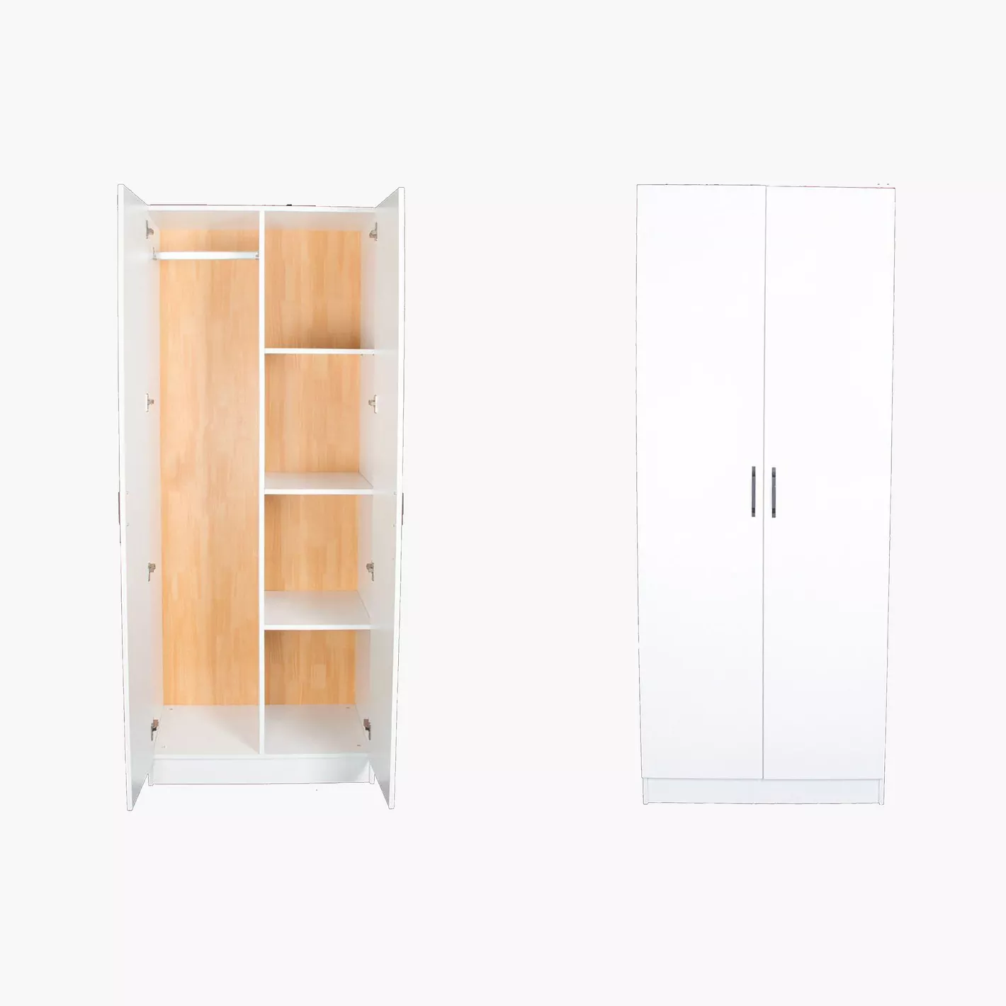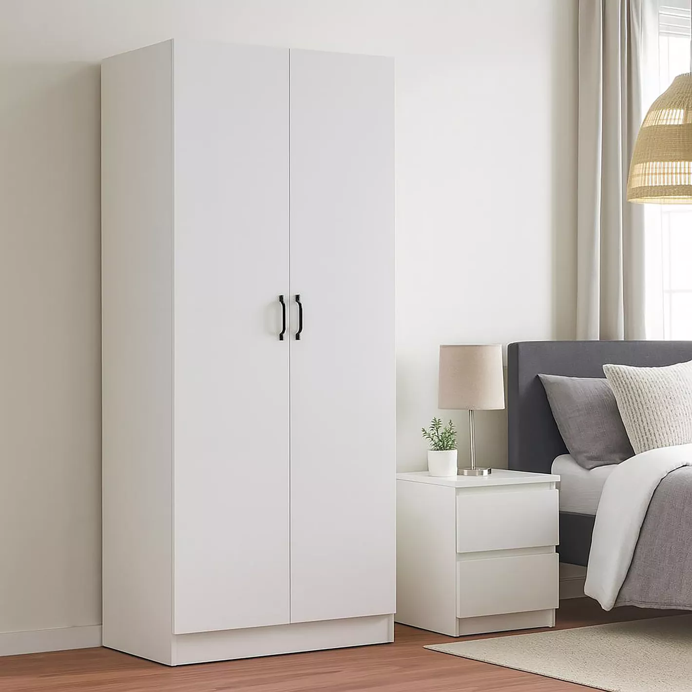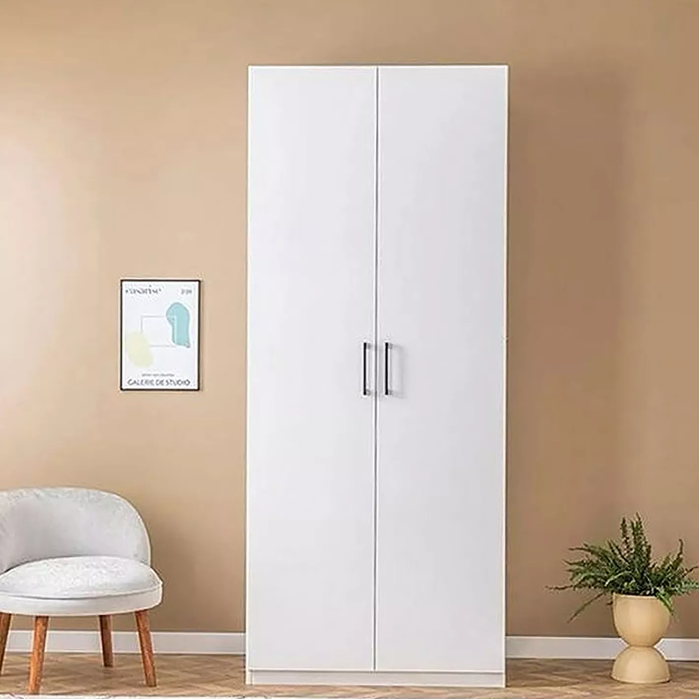 Minimal kulp tasarımı ve düz yüzeyiyle İskandinav tarzı gardırop görünümü sunan bu ürün, küçük alanlar için gardırop arayan kullanıcılar için de ideal bir tercihtir. Az yer kaplayan beyaz gardırop, ferah ve düzenli yaşam alanları oluşturmanıza yardımcı olur.