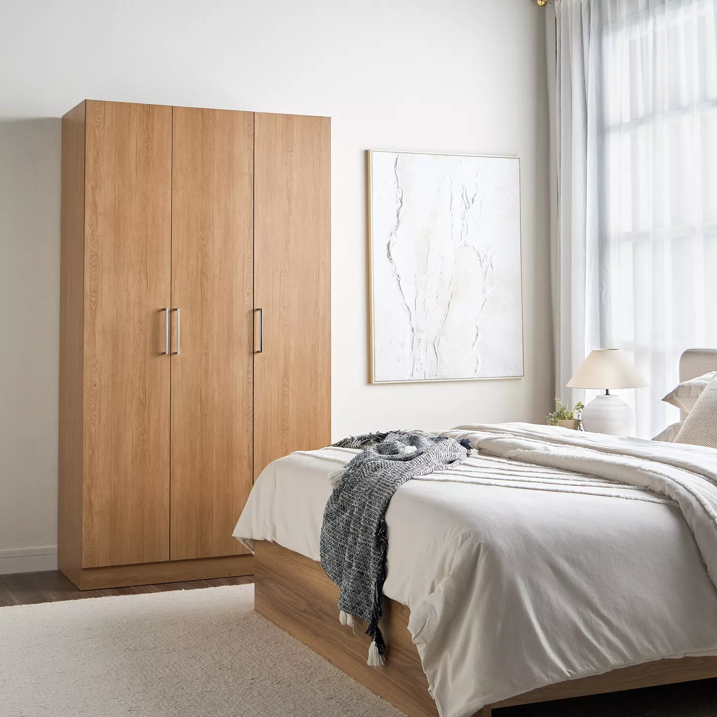 Mila Nature 3 Kapaklı Gardırop, doğal ahşap görünümü ve modern tasarımıyla yatak odası, genç odası ve misafir odaları için hem şık hem de fonksiyonel bir depolama çözümü sunar. 3 kapaklı gardırop arayanlar için geniş iç hacmiyle öne çıkan bu model, kıyafetlerinizi ve eşyalarınızı düzenli bir şekilde saklamanıza yardımcı olur.