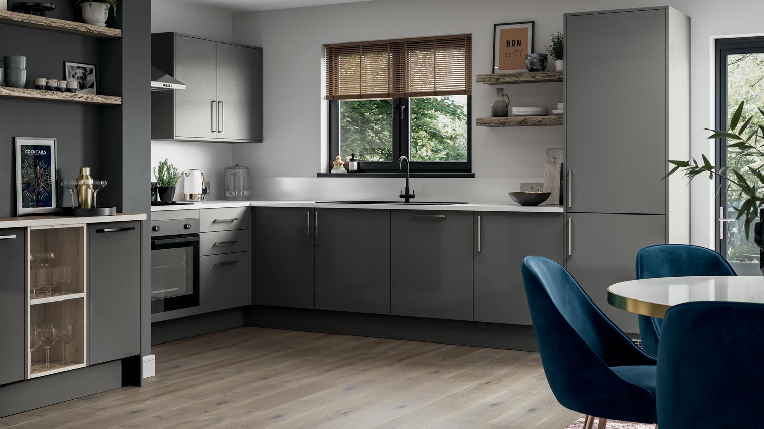 Silva Grey Mutfak, modern tasarım anlayışını sade şıklıkla buluşturan özel bir mutfak konseptidir. Mat gri yüzeyler, düz hatlar ve ankastre uyumlu yapısıyla hem estetik hem de kullanışlı bir mutfak deneyimi sunar.
